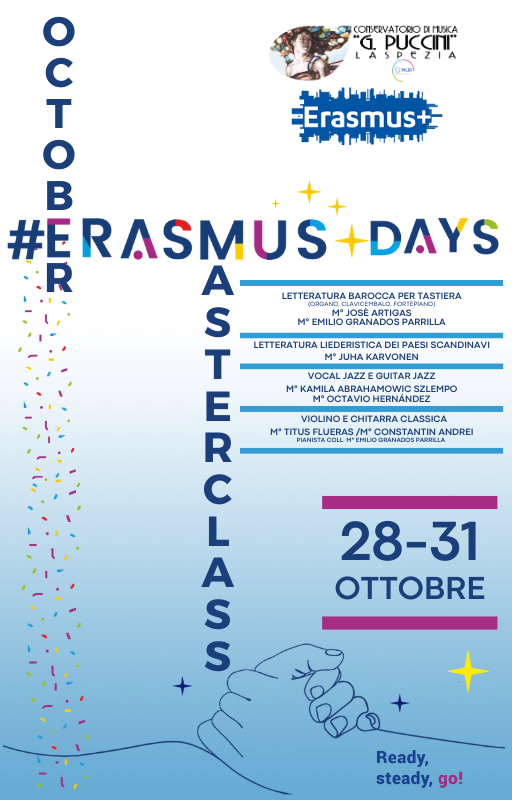 To make Europe shine! In occasione degli #Erasmusdays indetti dall’Agenzia nazionale Erasmus+ Indire, il nostro staff Erasmus apre le porte del  conservatorio all’Europa. Dal 28 al 31 di ottobre 2024 docenti provenienti dalla Polonia,Finlandia,Spagna e Romania terranno masterclass  e workshop per tutti  coloro che vorranno cogliere questa  opportunità di scambio,di crescita e di confronto con…